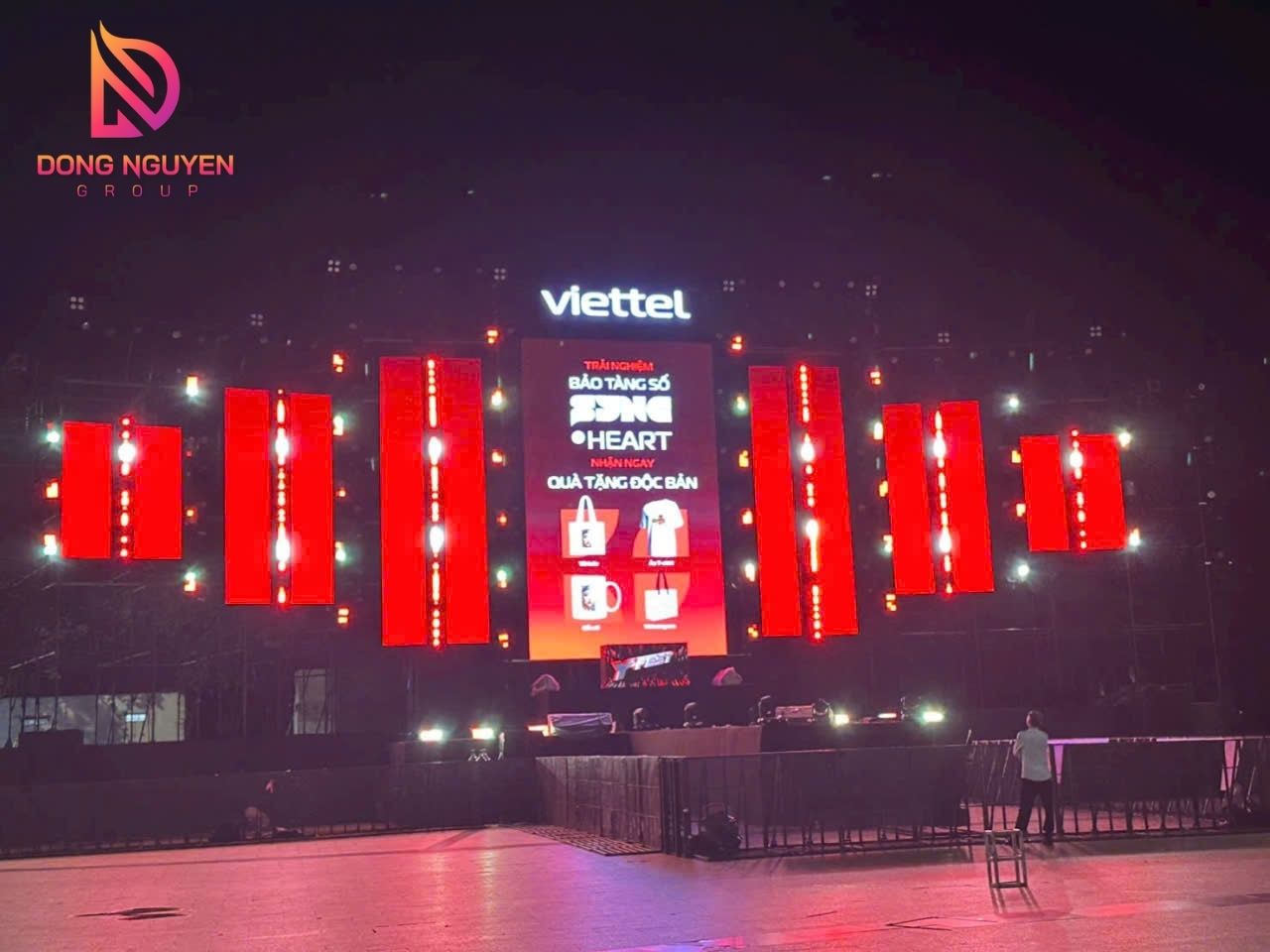 Các hạng mục quan trọng như khung kết cấu, ốp vật liệu, hệ thống đèn và logo Viettel đều được hoàn thiện tỉ mỉ, đạt chuẩn nhận diện toàn quốc.